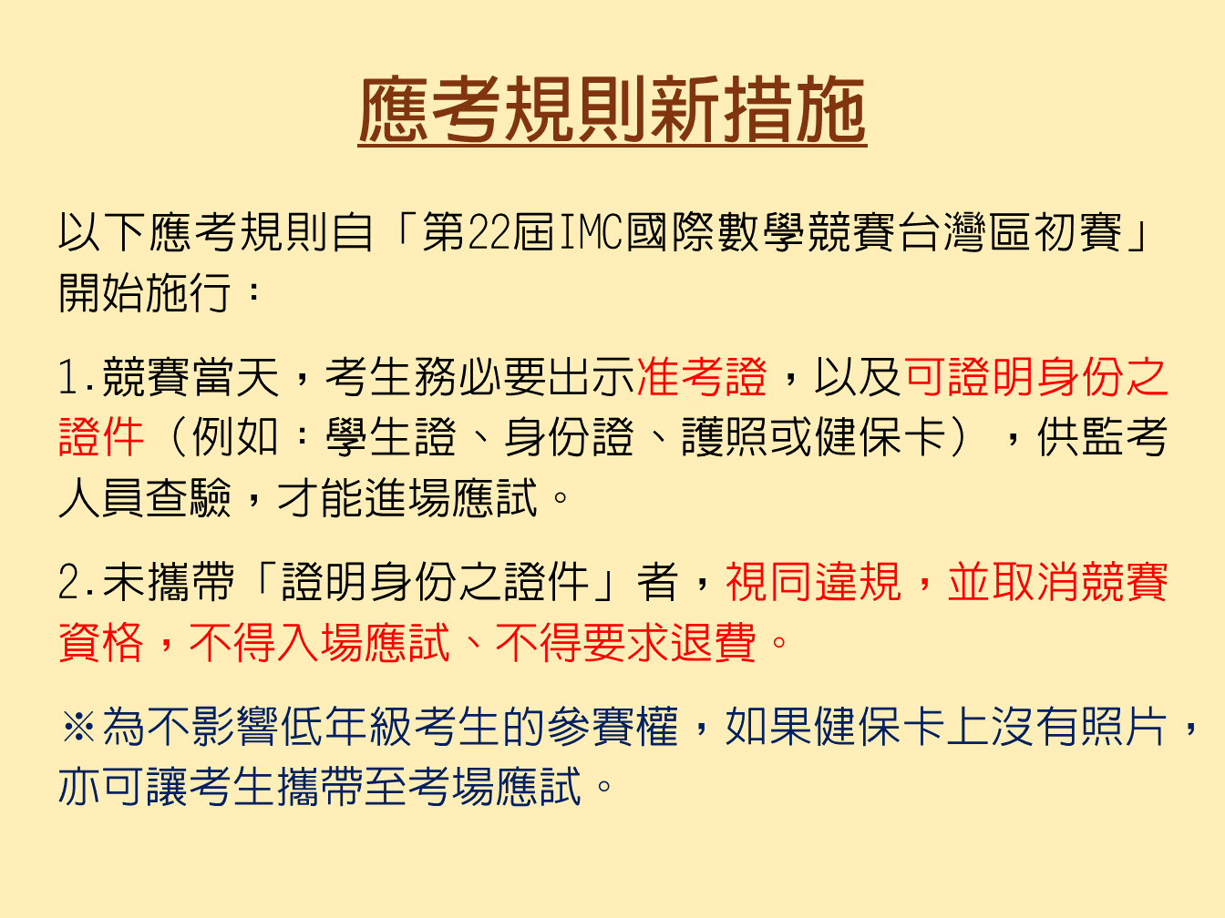 應考規則新措施(自第22屆IMC台灣區初賽起施行)